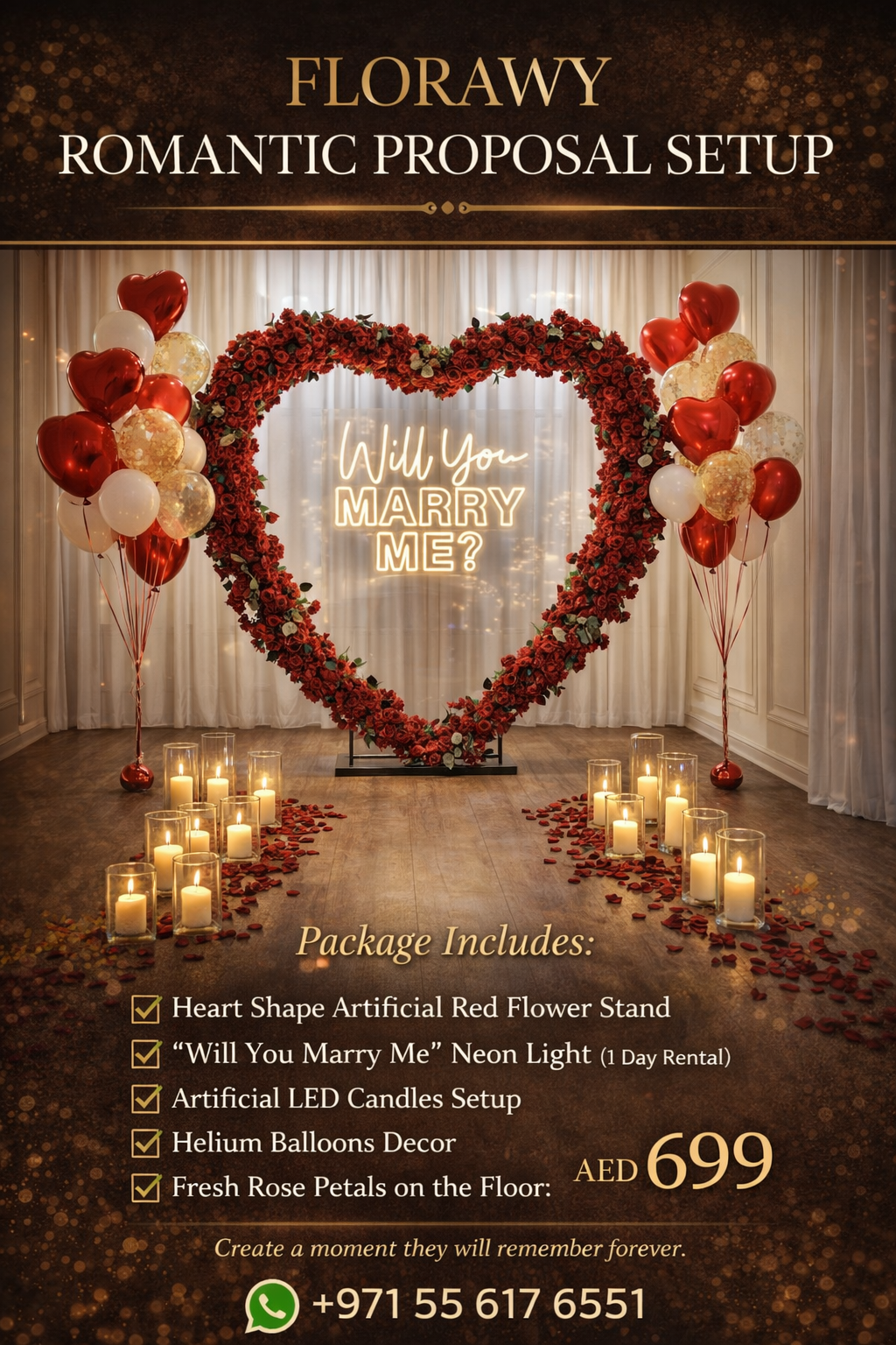 Create an unforgettable moment with the Florawy Romantic Proposal Setup, designed to turn your proposal into a magical experience.