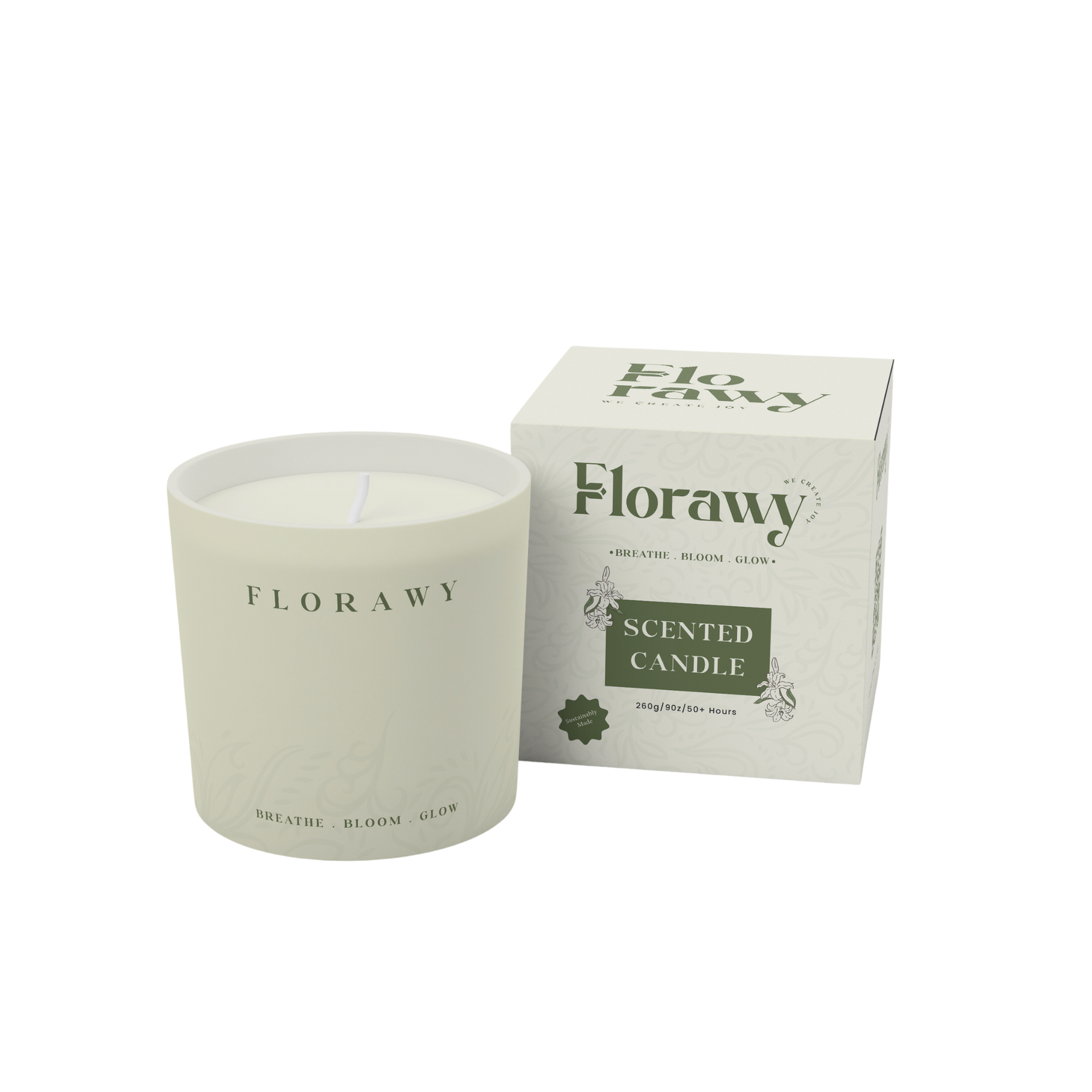 🕯️ Florawy Amber Mosaic Candle – Our signature fragrance candle, hand-poured to fill your space with warmth, calm, and luxury.