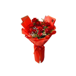 Featuring premium red roses delicately accented with baby’s breath and fresh greenery, this bouquet is wrapped in bold red luxury paper and finished with a romantic ribbon for maximum Valentine impact.