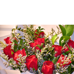 Featuring premium red roses beautifully complemented by fresh seasonal greenery and delicate fillers, this bouquet is wrapped in soft-toned luxury paper and finished with a romantic ribbon detail.